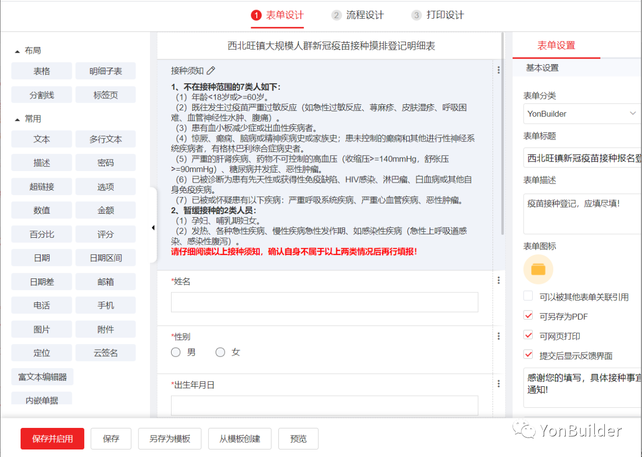 起初我觉得,不懂编程开发应用就是天方夜谭,这个平台的宣传语说不定也是在夸夸其谈,但想不到它真的对小白很友好,它已经预先设置好了很多组件和布局模板,我只需要拖拽这些组件,就轻轻松松地完成了报名表的设计。而且这个表还可以直接在移动端、PC端发布,不需要多次设计,甚至还能集成到钉钉、企业微信上。